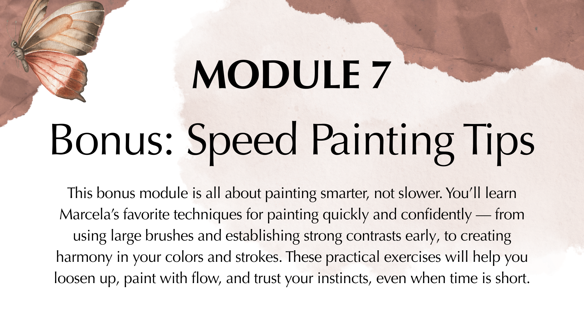 This min module is all about painting smarter, not slower. Packed with quick, actionable tips to help you paint faster and with more confidence. I will walk you through my go-to strategies for speeding up your work - from choosing the right tools to managing your time and trusting your instincts.